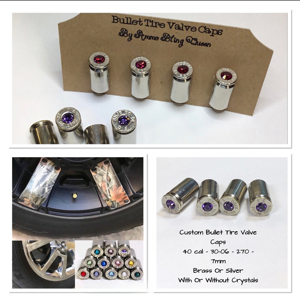 Custom Bullet Tire Valve caps available in a variety of bullet sizes and brands add Genuine Crystals for her