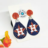 Houston Baseball Teardrop Orange Glitter Stud Earrings